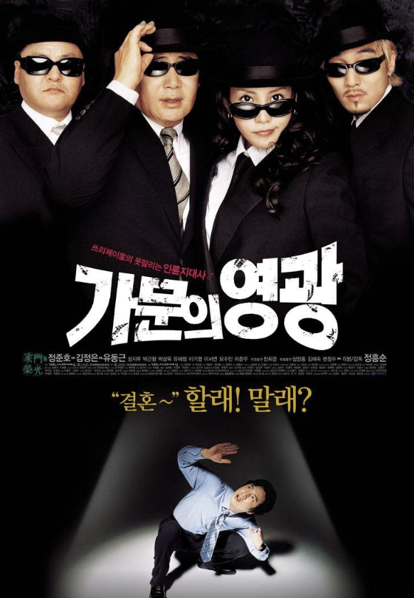 2002년 개봉한 정흥순 감독의 가문의 영광은 코미디와 가족 드라마를 절묘하게 결합해 흥행에 성공한 작품이다. 조직 폭력배 가문의 아들이 평범한 여대생과 사랑에 빠지며 벌어지는 해프닝을 그린 이 영화는 웃음과 감동을 동시에 선사했다.
